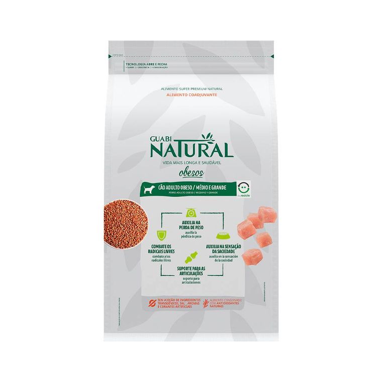 - Indicado para cães; - Os melhores ingredientes da natureza; - Alimento com qualidade e segurança em que pode confiar; - Sem transgênicos, sal, aromas e corantes artificiais; - Conservado com antioxidantes naturais; - Beta-glucanos no alimento e a redução do peso corporal contribuem para a melhora dos sinais clínicos de osteoartrite; - Contém glicosamina e condroitina, nutrientes que fazem parte da estrutura das cartilagens e dos tecidos articulares; - Maior quantidade de fibras que ajudam na redução da sensação de fome; - Vitamina E, vitamina C e selênio são antioxidantes que combatem os radicais livres; - Ameniza os efeitos prejudiciais do estresse oxidativo potencializado pela obesidade; - Com baixa caloria e gorduras para auxiliar na perda de peso, enriquecido com L-carnitina; - Para auxiliar no metabolismo da gordura e teor reforçado de proteínas; - Favorece a manutenção da musculatura; - Disponível em embalagem de 2,5kg e 10,1kg. Especificações Idade Adulto Linha Prescrita Pet Cachorros Porte de Raça Médio e Grande Corante Não Transgênico Não Formato Alimento Grãos Raça Cachorro Todas Tipo Alimento Comum Sabor Completo Frango Sabor Principal Frango Tipo Ração seca Indicação Veterinária Obesidade e Diabetes Apresentação Disponível em embalagem de 2,5kg e 10,1kg Informações Nutricionais Vitamina A 10.000UI, Vitamina D3 904UI, Vitamina E 700UI, Vitamina K3 0,16mg, Vitamina C 300mg, Vitamina B1 3,4mg, Vitamina B2 10mg, Pantotenato de Cálcio 23mg, Ácido Nicotínico 26,9mg, Vitamina B6 2,46mg, Biotina 0,03mg, Ácido Fólico 0,4mg, Vitamina B12 55μg, Colina 2.550mg, Manganês 9mg, Zinco 133mg, Ferro 111mg, Cobre 14mg, Iodo 1,9mg, Selênio 0,7mg, Cromo 0,4mg. Níveis de Garantia Proteína Bruta (mín.) 320g/kg (32%) Extrato Etéreo (mín.) 75g/kg (7,5%) Umidade (máx.)100g/kg (10%) Matéria Fibrosa (máx.) 120g/kg (12%) Matéria Mineral (máx.) 95g/kg (9,5%) Cálcio (máx.) 18g/kg (1,8%) Cálcio (mín.) 9.000mg/kg (0,9%) Fósforo (mín.) 7.000mg/kg (0,7%) Potássio (mín.) 6.000mg/kg Taurina (mín.) 1.200mg/kg Triptofano (mín.) 2.000mg/kg Lisina (mín.) 13g/kg Metionina (mín.) 6.500mg/kg Carnitina (mín.) 300mg/kg Ômega 6 (mín.) 16g/kg Ômega 3 (mín.) 1.600mg/kg EPA+DHA (mín.) 800mg/kg Mananoligossacarídeos (mín.) 250mg/kg Inulina (mín.) 1.500mg/kg Beta-Glucanos (mín.) 800mg/kg Condroitina (mín.) 200mg/kg Glicosamina (mín.) 400mg/kg Energia Metabolizável (mín.) 3.100kcal/kg Composição Carne Mecanicamente Separada de Frango, Fígado de Frango, Farinha de Vísceras de Aves, Farinha de Torresmo, Ovo em Pó, Farinha de Salmão, Óleo de Aves, Óleo de Peixe Refinado, Arroz Integral, Grão de Aveia, Cevada em Grão, Grão de Sorgo, Ervilha, Brócolis Desidratado, Espinafre Desidratado, Cenoura Desidratada, Mirtilo Desidratado “Blueberry”, Amora Desidratada, Maçã Desidratada, Manga Desidratada, Polpa de Beterraba, Farinha da Alga Schizochytrium sp., Semente de Psyllium, Casca de Aveia Moída, Casca de Ervilha Moída, Fibra de Cana-de-Açúcar, Levedura Seca de Cervejaria, Cloreto de Potássio, Carbonato de Cálcio, Sulfato de Glicosamina, Sulfato de Condroitina, Parede Celular de Levedura Fonte de Beta-Glucanos, Hidrolisado de Fígado de Aves e Suínos, Hexametafosfato de Sódio, Extrato de Yucca, L-Lisina, Taurina, DL-Metionina, L-Carnitina, L-Triptofano, Propionato de Cálcio, Sorbato de Potássio, Aditivos Prebióticos (Inulina e Parede Celular de Levedura Fonte de Mananoligossacarídeos), Antioxidantes Naturais (Extrato de Alecrim e Concentrado de Tocoferóis), Aditivo Adsorvente (Parede Celular de Levedura e Bentonita), Vitamina A, Vitamina D3, Vitamina E, Menadiona Bissulfito de Sódio (Vitamina K3), Ácido Ascórbico (Vitamina C), Mononitrato de Tiamina (Vitamina B1), Riboflavina (Vitamina B2), Piridoxina (Vitamina B6), Vitamina B12, Pantotenato de Cálcio, Ácido Fólico, Ácido Nicotínico, Biotina, Cloreto de Colina, Sulfato de Zinco, Sulfato de Ferro, Sulfato de Manganês, Iodato de Cálcio, Proteinato de Manganês, Levedura Enriquecida com Selênio, Proteinato de Zinco, Proteinato de Cobre, Cromo Levedura. Quantidade Diária Recomendada PESO ATUAL DO CÃO: QUANTIDADE DIÁRIA RECOMENDADA PARA PERDA DE PESO (EM GRAMAS) 12kg 127 15kg 150 20kg 186 25kg 220 30kg 252 35kg 283 40kg 313 45kg 342 PESO ATUAL DO CÃO: QUANTIDADE DIÁRIA RECOMENDADA PARA MANUTENÇÃO (EM GRAMAS) 11kg 133 15kg 167 20kg 207 25kg 245 30kg 281 35kg 316 40kg 349 45kg 381 *Peso atual é o peso corporal observado no momento da avaliação, por meio de uma balança calibrada. Código de barras 7896048918055