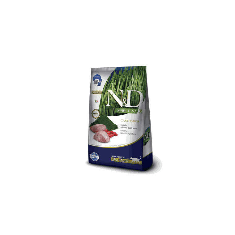 - Indicada para gatos; - 92% de proteínas de origem animal; - 0% de corantes; - 0% de aromas artificiais; - Com conservantes naturais; - Livre de transgênicos; - Tecnologia vacuum coater; - Feito em atmosfera controlada; - Disponível em embalagens de 400 g, 1,5 kg e 7 kg. Especificações Idade Adulto Pet Gatos Corante Não Transgênico Não Formato Alimento Grãos Raça Gatos Todas Tipo Alimento Comum Sabor Principal Cordeiro Indicação Veterinária Castrados Tipo Ração seca Medidas aproximadas 8mm cada grão Sabor Completo Cordeiro, Cereais e Frutas Tropicais Apresentação Disponível em embalagens de 400 g, 1,5 kg e 7 kg. Indicação Alimento completo e balanceado para gatos adultos castrados Informações Nutricionais Vitamina A 18.700UI; vitamina D3 1.250UI; vitamina E 510UI; vitamina B1 8,4mg; vitamina B2 17mg; vitamina B5 42mg; vitamina B6 6,5mg; vitamina B12 80mcg; vitamina C 255mg; biotina 1,25mg; niacina 127mg; ácido fólico 1,25mg; colina 2.400mg; ferro 80mg; cobre 15mg; zinco 145mg; manganês 48mg; selênio 0,15mg; iodo 1,5mg. Quantidade Diária Recomendada Peso do gato (kg) Quantidades diárias recomendadas 2kg 27-36g ou 0,25-0,33 copo 2,5kg 32-42g ou 0,33-040 copo 3kg 36-47g ou 0,33-050 copo 3,5kg 40-52g ou 0,40-0,50 copo 4kg 43-57g ou 0,44-0,55 copo 4,5kg 46-62g ou 0,50-0,66 copo 5kg 50-67g ou 0,50-0,66 copo 5,5kg 54-71g ou 0,55-0,70 copo 6kg 57-75g ou 0,60-0,75 copo 6,5kg 60-80g ou 0,60-0,80 copo Níveis de Garantia Umidade (máx.) 90g/kg (9%); Proteína Bruta (mín.) 370g/kg(37%); Extrato Etéreo (mín.) 100g/kg(10%); Matéria Fibrosa (máx.) 50g/kg (5%); Matéria Mineral (máx.) 80g/kg(8%); Cálcio (mín.) 8.000mg/kg(0,8%); Cálcio (máx.) 16g/kg(1,6%); Fósforo (mín.) 8.000mg/kg (0,8%); Sódio (mín.) 2.000mg/kg; Potássio (mín.) 5.000mg/kg; Magnésio (mín.) 900mg/kg; Ômega 6 (mín.) 15g/kg; Ômega 3 (mín.) 2.500mg/kg; DHA (mín.) 575mg/kg; EPA (mín.) 480mg/kg; Fruto-Oligossacarídeos (mín.) 400mg/kg; Mannan-Oligossacarídeos (mín.) 240mg/kg; Metionina (mín.) 7.500mg/kg; Taurina (mín.) 2.000mg/kg; L-Carnitina (mín.) 100mg/kg; Lisina (mín.) 14g/kg; Sulfato de Condroitina (mín.) 75mg/kg; Sulfato de Glicosamina (mín.) 150mg/kg; E. Metabolizável (mín.) 3.580 kcal/kg Composição Cordeiro (carne de ovino, farinha de carne e ossos de ovino– mín. 3%), cereais e frutas (aveia, grãos de sorgo, cevada em grãos, banana desidratada, mamão desidratado, kiwi desidratado, manga desidratada – mín. 35%), farinha de vísceras de aves, farinha de torresmo, ovo em pó, quirera de arroz, farelo de trigo, farinha de peixe, óleo de frango, óleo de peixe, polpa de beterraba, alfafa desidratada, celulose em pó, levedura seca de cervejaria, cenoura desidratada, aditivos prebióticos (FOS e MOS), DL-metionina, taurina, L-carnitina, sulfato de condroitina, sulfato de glicosamina, aditivos adsorventes (extrato de yucca e zeolita), hidrolisado de fígado de aves e suínos, vitaminas (A, D3, E, B1, B2, B5, B6, B12, C, biotina, niacina, ácido fólico, cloreto de colina), cloreto de sódio, cloreto de potássio, cloreto de amônio, ferro aminoácido quelato, cobre aminoácido quelato, zinco aminoácido quelato, manganês aminoácido quelato, proteinato de selênio, iodato de cálcio, propionato de cálcio, concentrado de tocoferóis. Eventuais substitutivos: proteína hidrolisada de peixe, proteína hidrolisada de frango. Código de barras 7898604436768